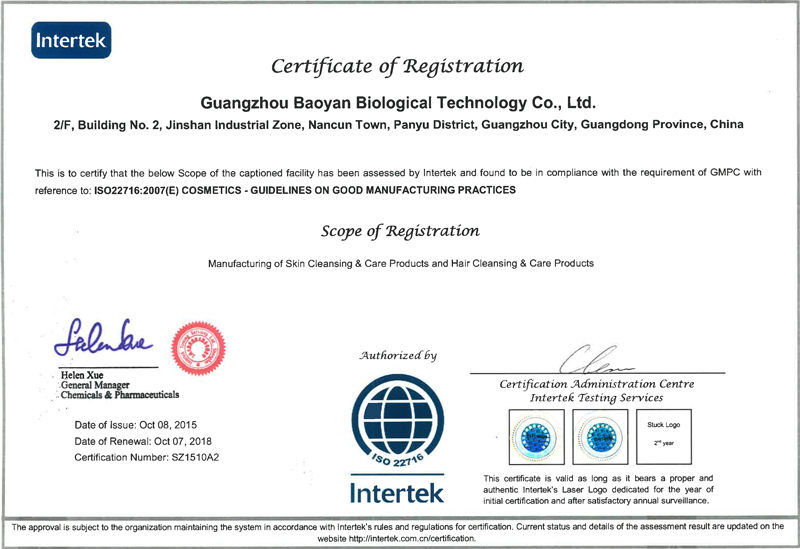 廣州葆妍生物科技有限公司位于廣州番禺金山工業園,成立于2009年,經營面積12000平方,集化妝品(護膚類、彩妝類)配方開發、生產加工于一體,專業化、規?;幕瘖y品OEM/ODM/OBM企業... -